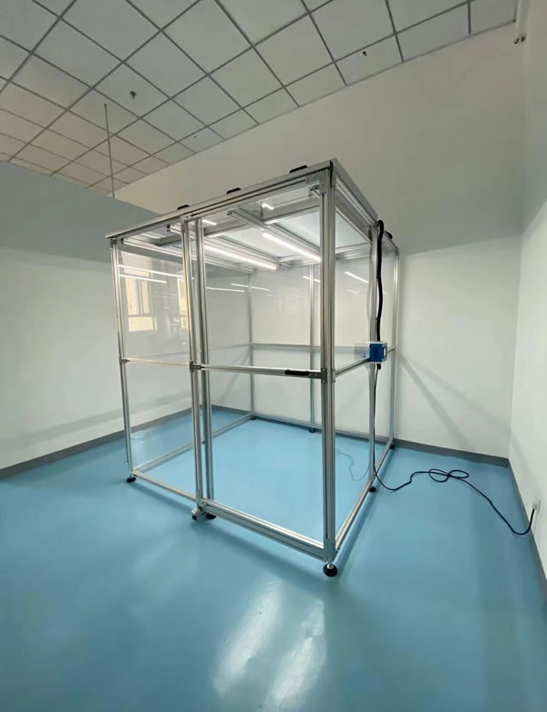 潔凈棚又稱潔凈工作間或無塵潔凈室,是為了創(chuàng)造高度潔凈的工作環(huán)境而設計的小型獨立空間,通過風機過濾機組(FFU)將潔凈空氣輸送至內部區域,確保工作環(huán)境的潔凈等級符合規(guī)定標準。
